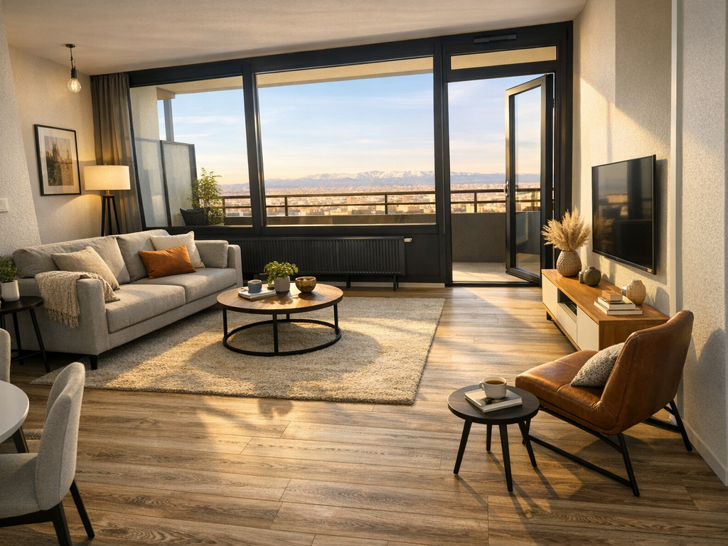 - Die in der Anzeige verwendeten Fotos können Beispielfotos oder KI-generierte Visualisierungen (Kennzeichnung mit „virtually staged“) sein, die der besseren Veranschaulichung der Immobilie dienen und von den tatsächlichen Gegebenheiten abweichen können.
