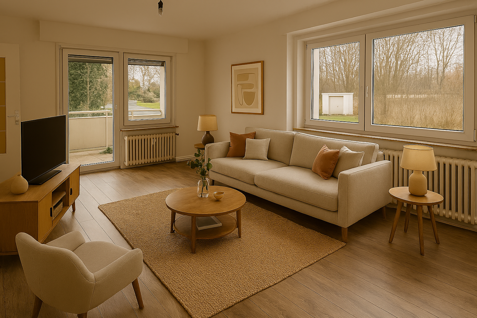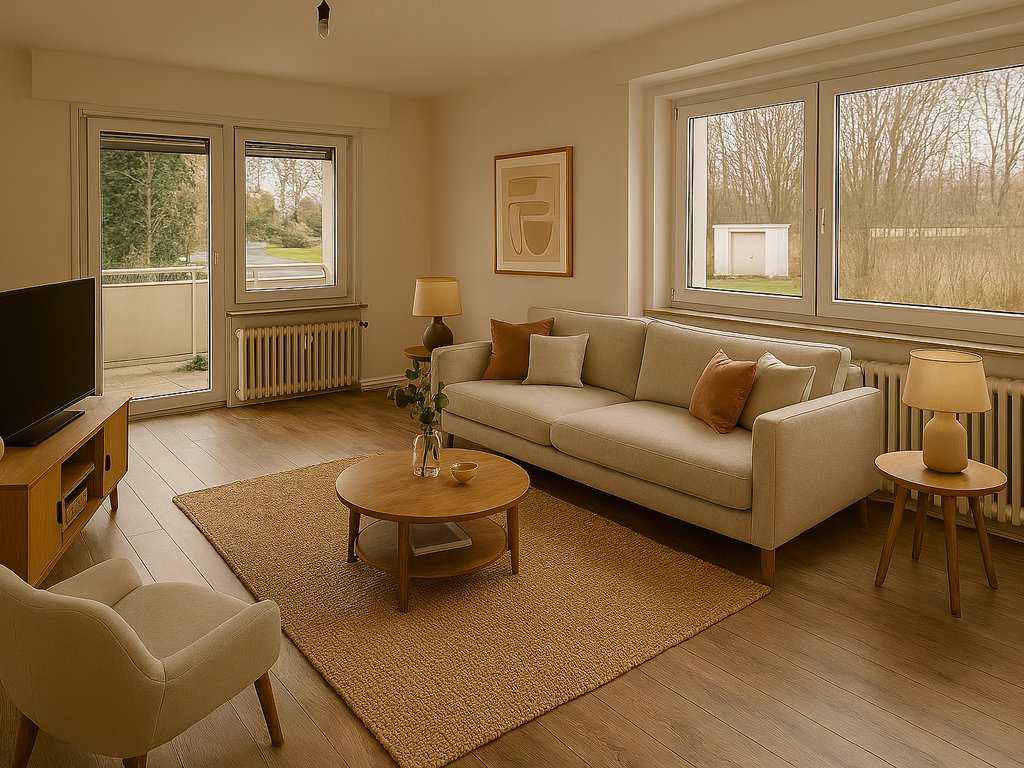 - Die in der Anzeige verwendeten Fotos können Beispielfotos oder KI-generierte Visualisierungen (Kennzeichnung mit „virtually staged“) sein, die der besseren Veranschaulichung der Immobilie dienen und von den tatsächlichen Gegebenheiten abweichen können.