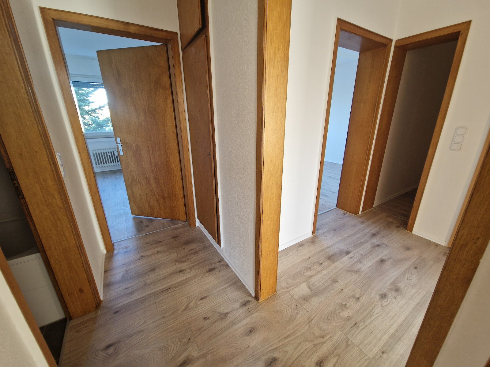 - Laminat- Bodenbelag und Raufasertapete in den Wohnräumen