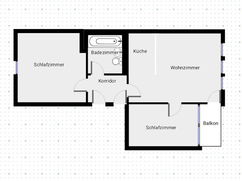 Die 3-Zimmer-Wohnung verteilt sich auf ca. 58,9 m²