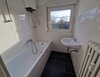 - Anthrazite Boden- und weiße Wandfliesen im Bad