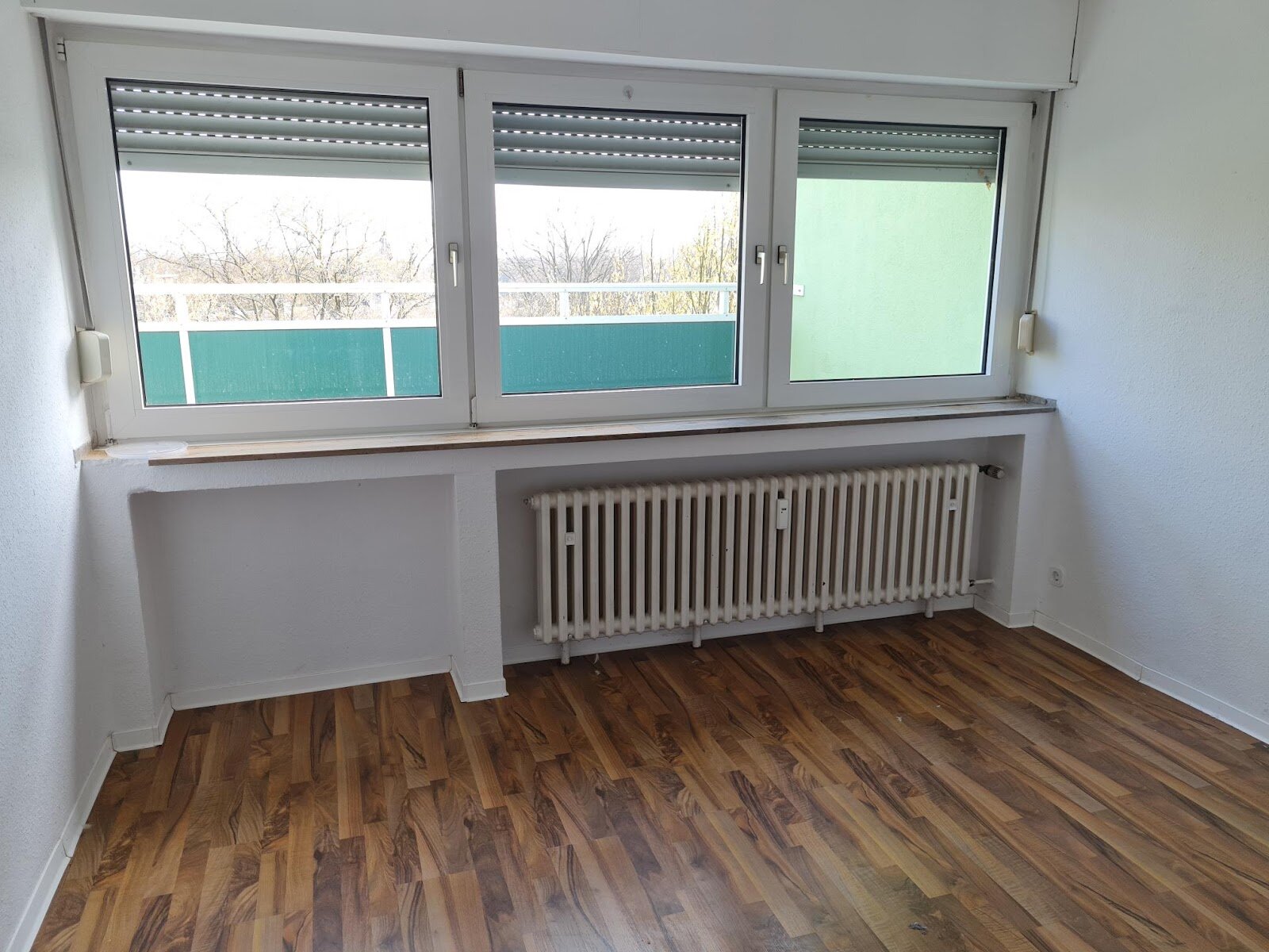 - Laminat/PVC- Bodenbelag und Raufasertapete in den Wohnräumen