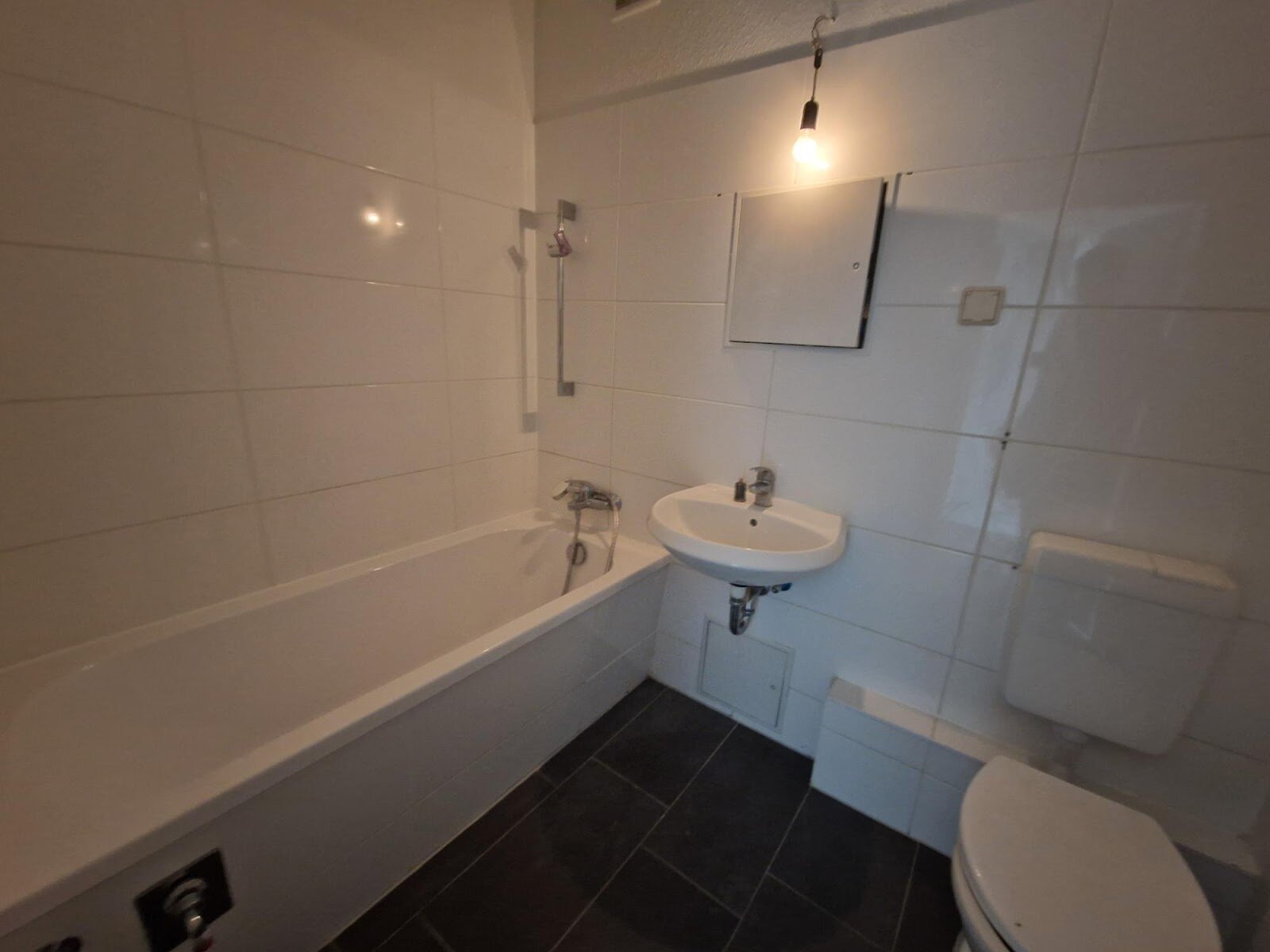 - Anthrazite Boden- und weiße Wandfliesen im Bad