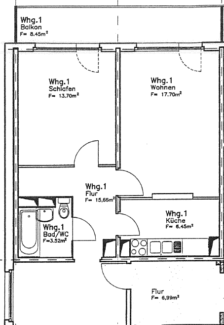 - PVC- Bodenbelag und Raufasertapete in den Wohnräumen