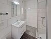 - Anthrazite Boden- und weiße Wandfliesen im Bad