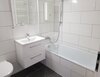 - Anthrazite Boden- und weiße Wandfliesen im Bad