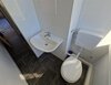 - Anthrazite Boden- und weiße Wandfliesen im Bad
