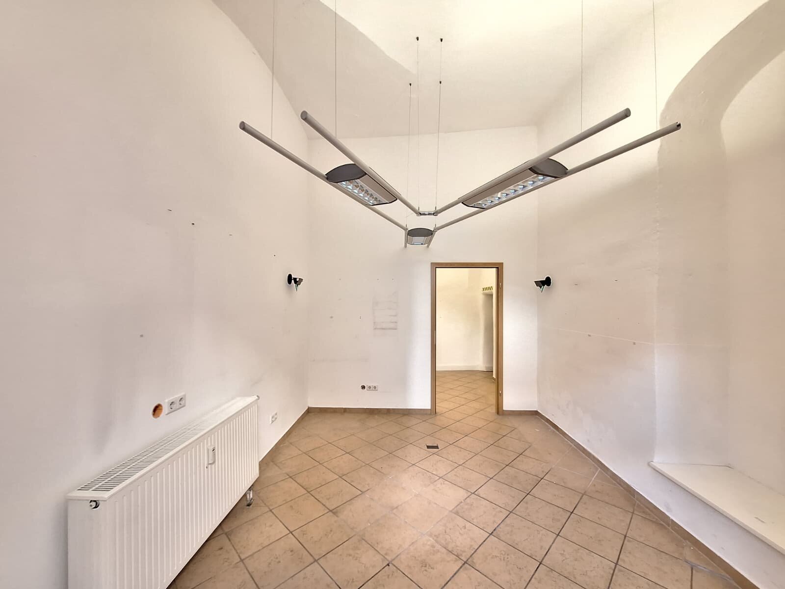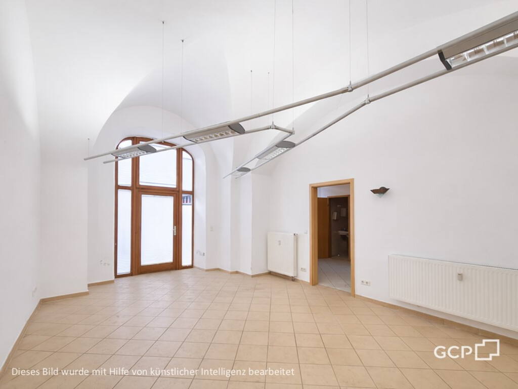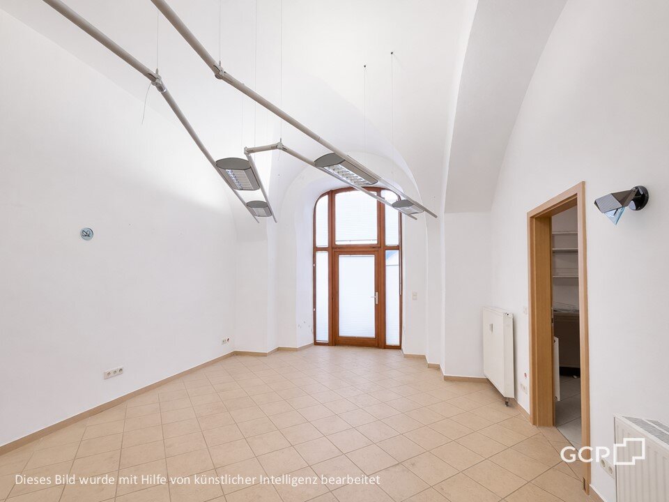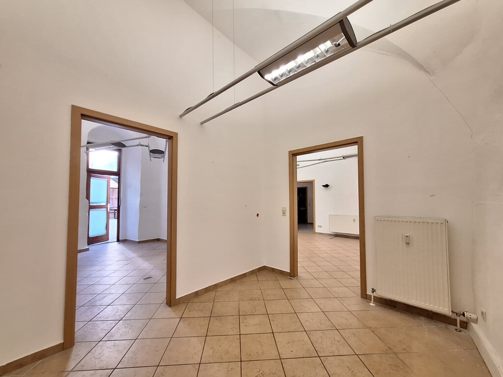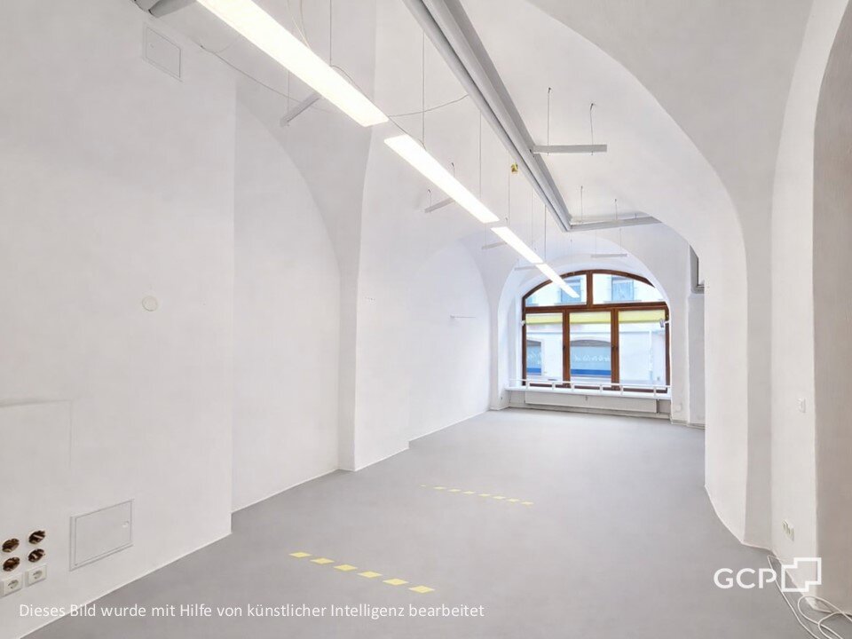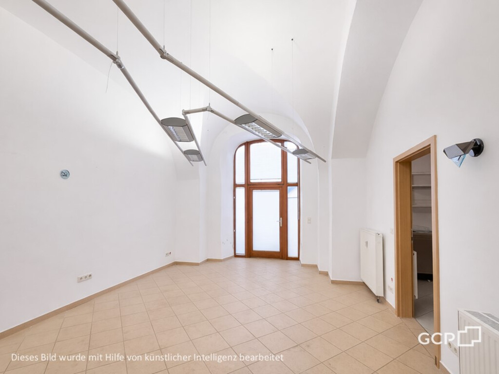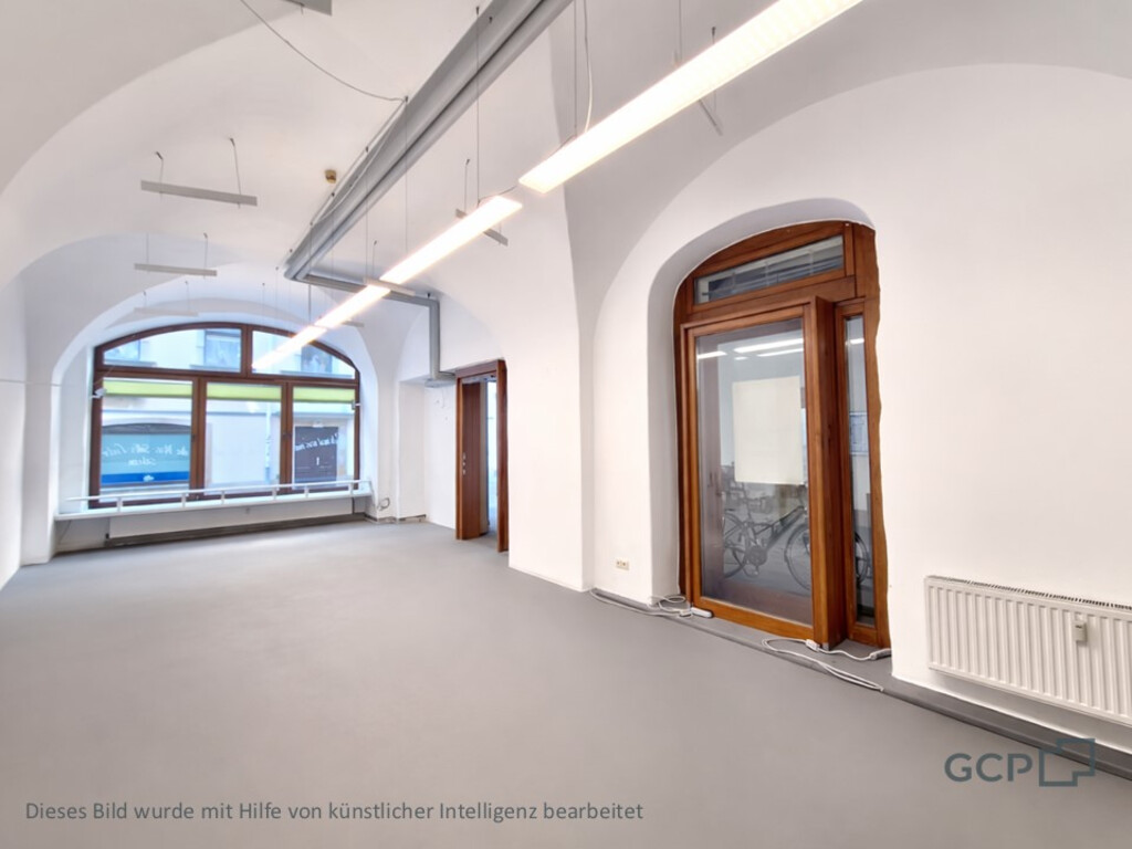 Die Einheit bietet helle, offen gestaltete Räume mit hohen Decken und charakteristischen Gewölbeelementen, die eine angenehme Arbeits- und Aufenthaltsatmosphäre schaffen. Große Schaufensterflächen sorgen für viel Tageslicht und ermöglichen eine ansprechende Präsentation Ihrer Geschäftsidee.