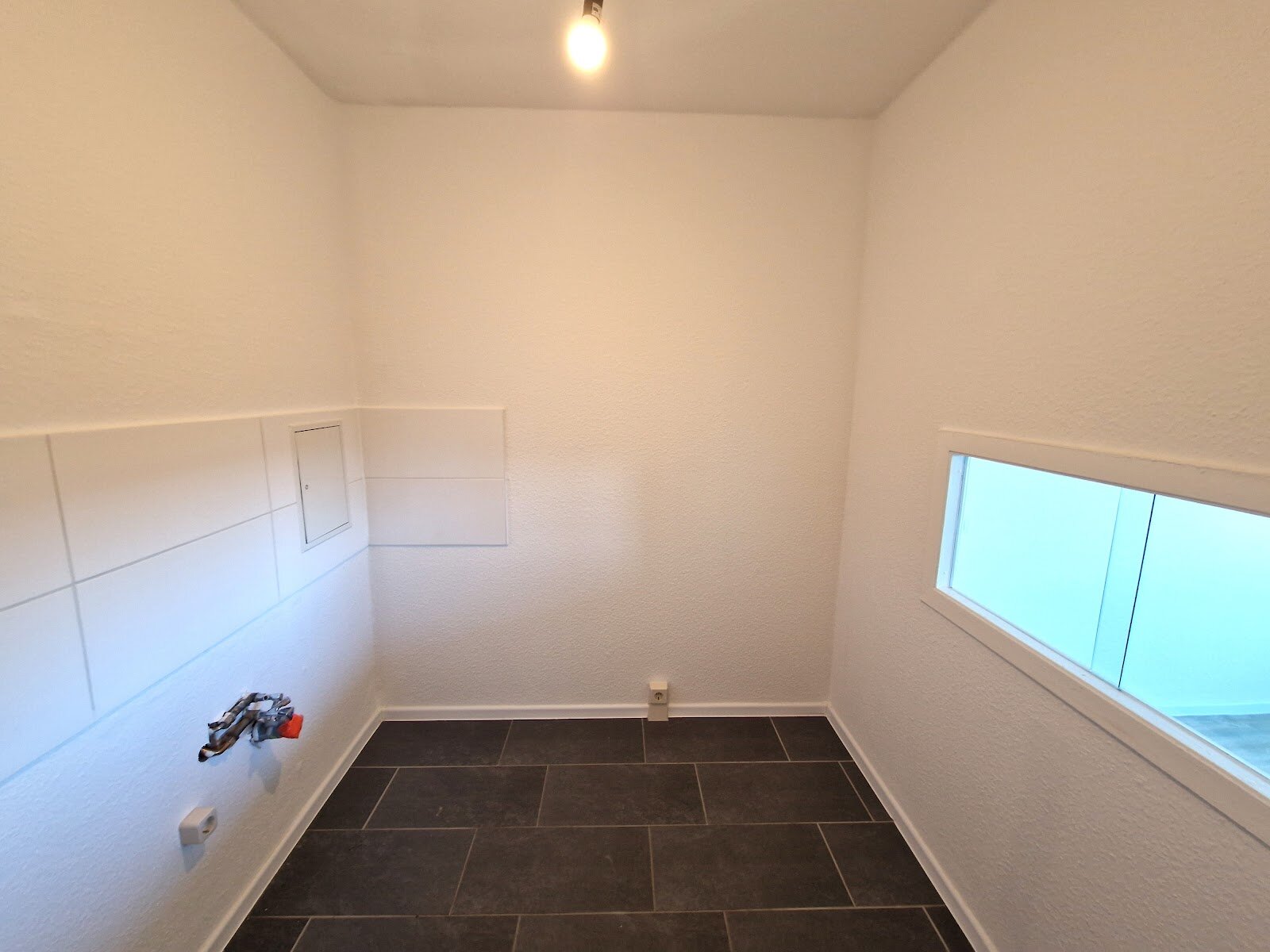 - Laminat/PVC- Bodenbelag und Raufasertapete in den Wohnräumen
