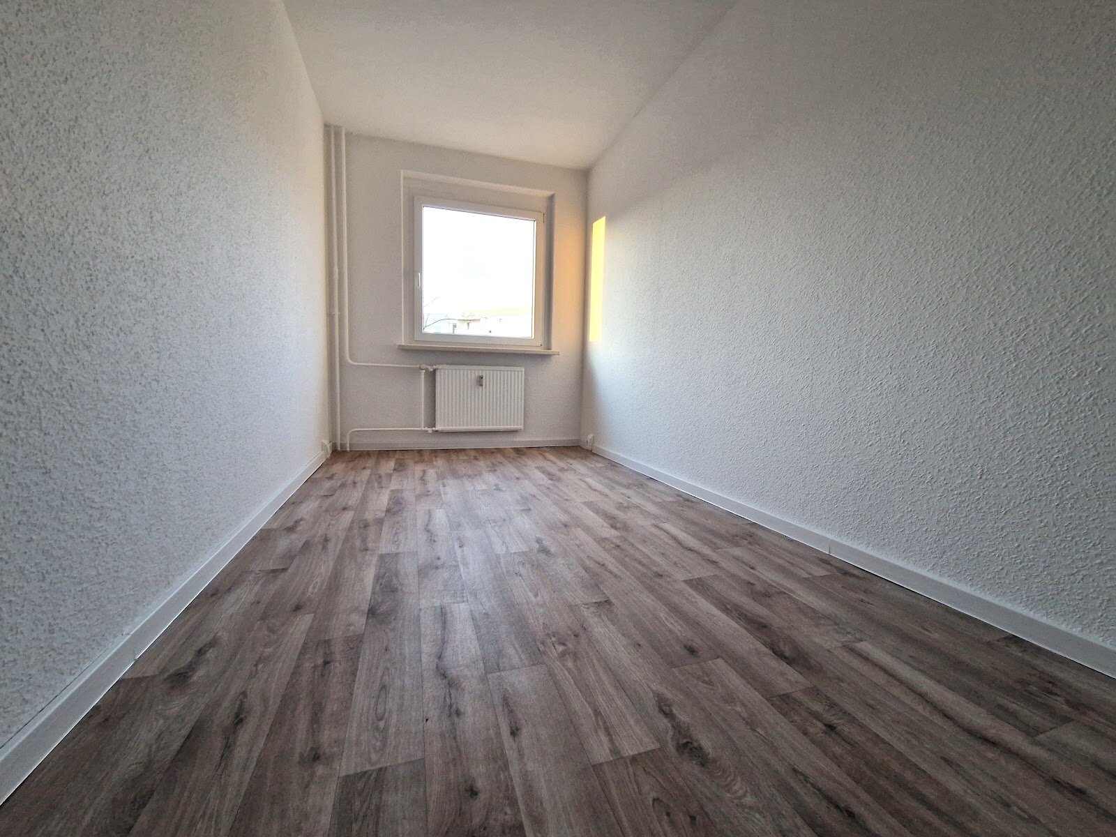 - PVC- Bodenbelag und Raufasertapete in den Wohnräumen