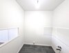 - Anthrazite Boden- und weiße Wandfliesen im Bad