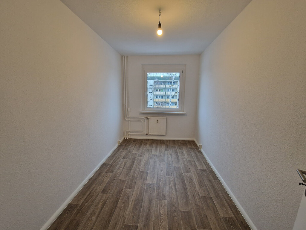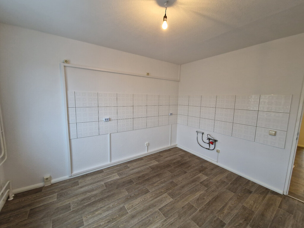 - Laminat/PVC- Bodenbelag und Raufasertapete in den Wohnräumen