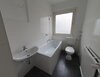 - Anthrazite Boden- und weiße Wandfliesen im Bad