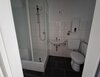 - Anthrazite Boden- und weiße Wandfliesen im Bad