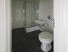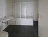 - Anthrazite Boden- und weiße Wandfliesen im Bad