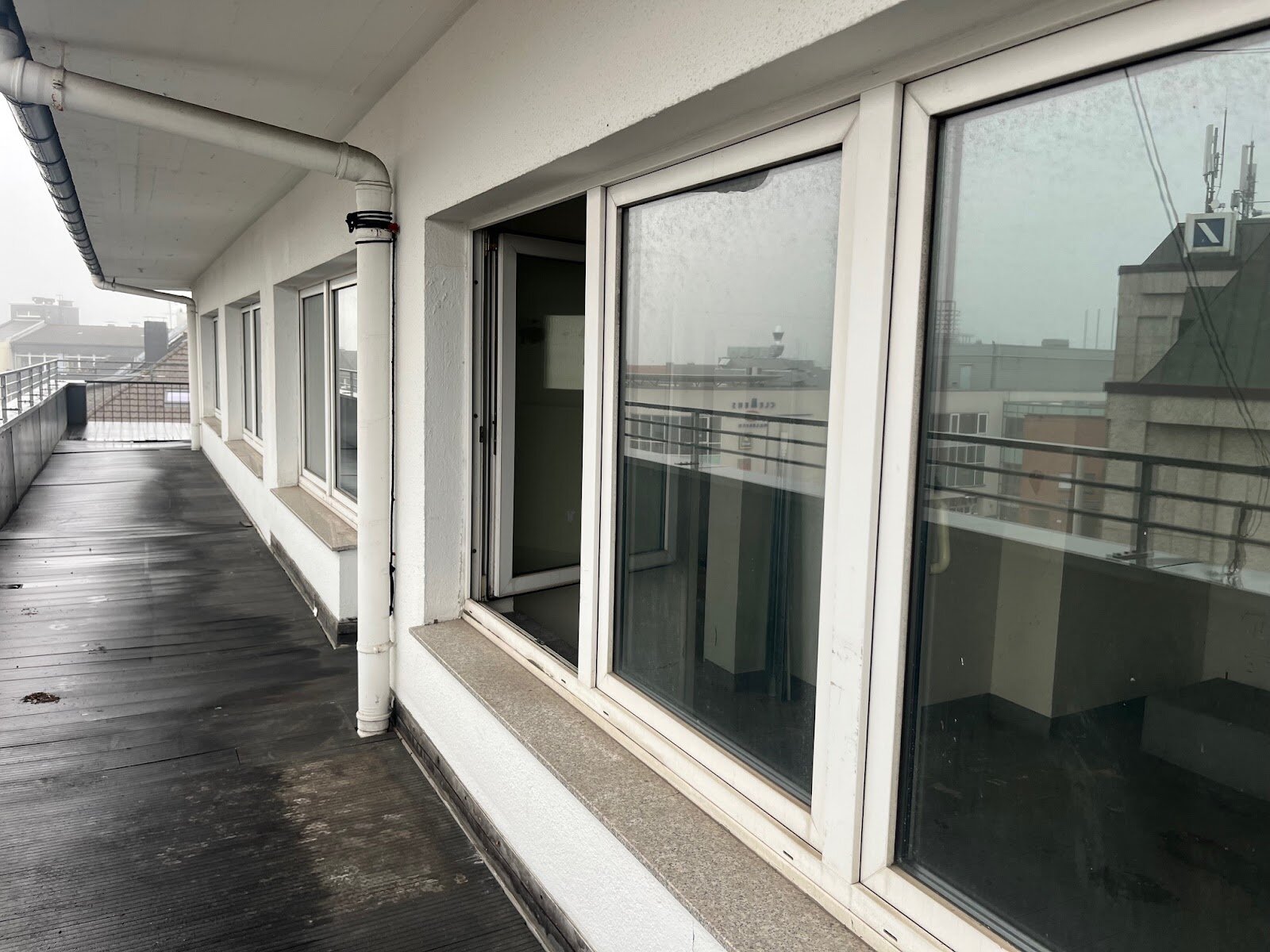 Über eine Innentreppe gelangt man in das 5. Obergeschoss. Dort öffnet sich ein lichtdurchflutetes Wohnzimmer, das dank großer Fensterfronten und der besonderen Raumhöhe ein luftiges Ambiente schafft. Das absolute Highlight ist die riesige Dachterrasse, die direkt an den Wohnbereich anschließt. Sie bietet viel Platz für gemütliche Abende, sonnige Stunden oder eine stilvolle Outdoor-Gestaltung mit Blick über die Stadt.