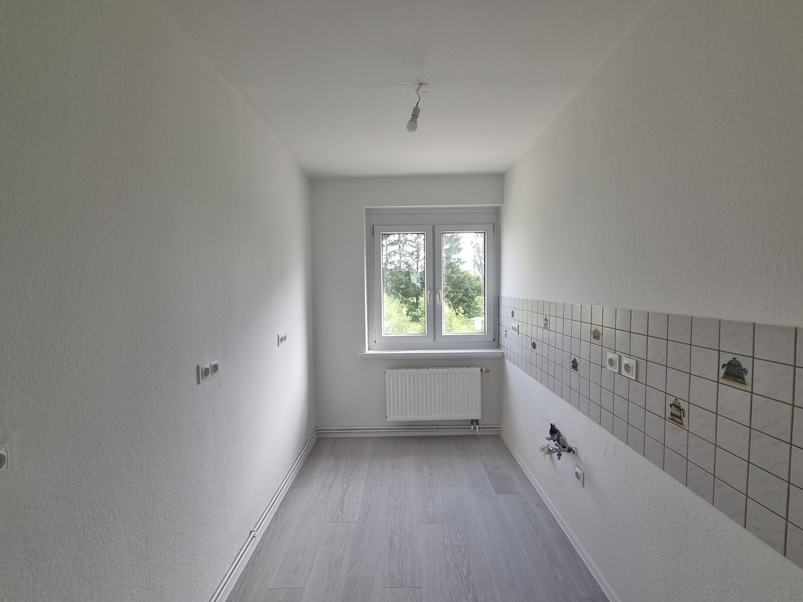 - PVC- Bodenbelag und Raufasertapete in den Wohnräumen