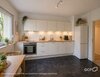 - Anthrazitfarbener Bodenbelag und weiße Wandfliesen in der Küche