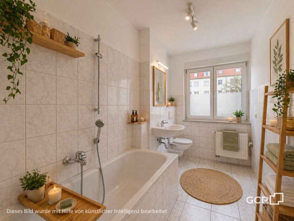 - Tageslichtbad mit Badewanne und Waschmaschinenanschluss
