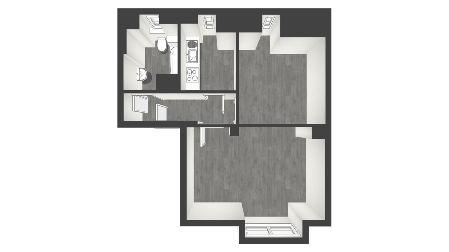Die 2-Zimmer-Wohnung verteilt sich auf ca. 50 m²