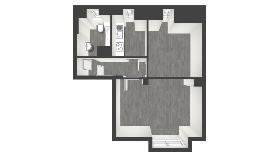Die 2-Zimmer-Wohnung verteilt sich auf ca. 50 m²