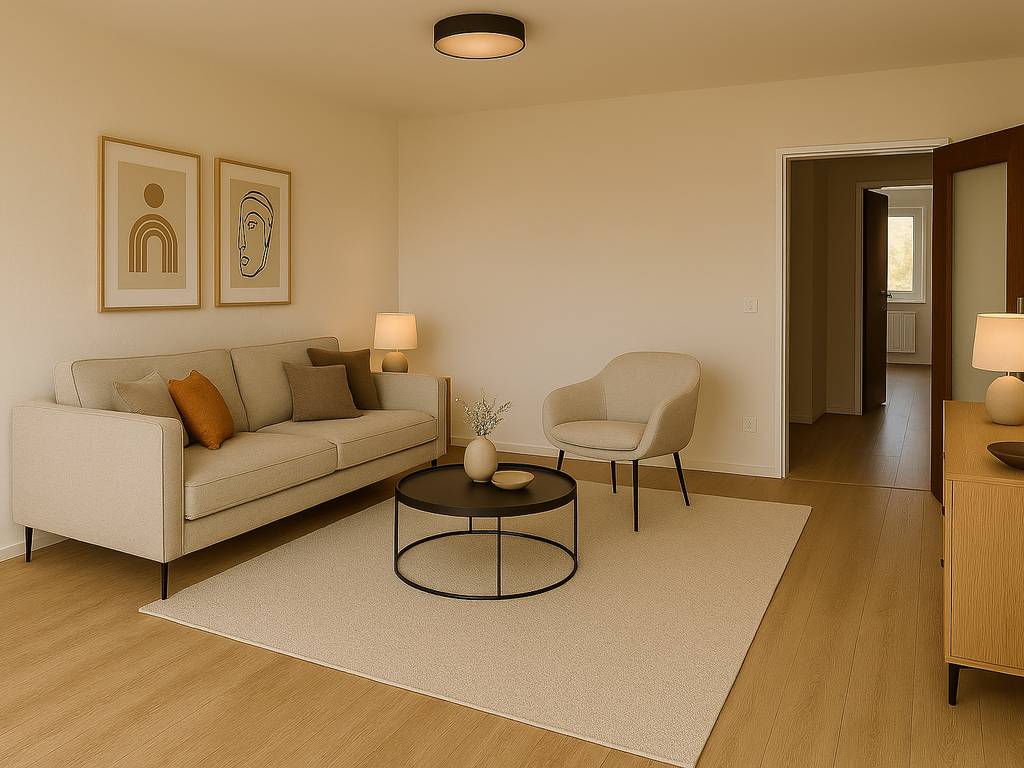 - Die in der Anzeige verwendeten Fotos können Beispielfotos oder KI-generierte Visualisierungen (Kennzeichnung mit „virtually staged“) sein, die der besseren Veranschaulichung der Immobilie dienen und von den tatsächlichen Gegebenheiten abweichen können.