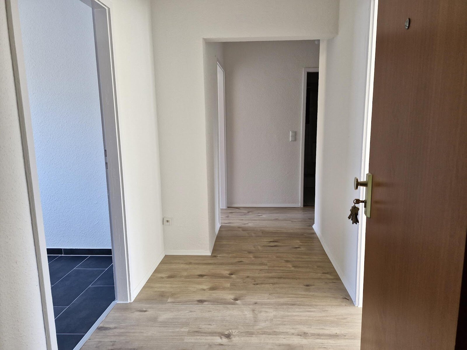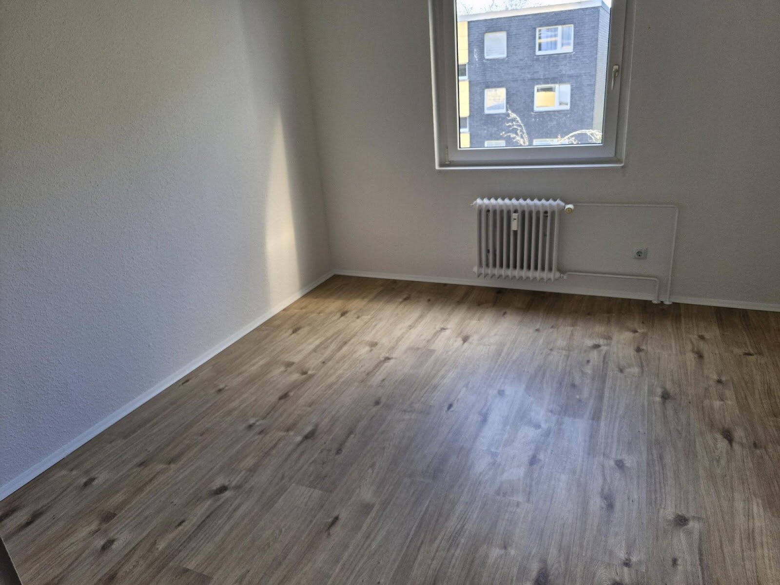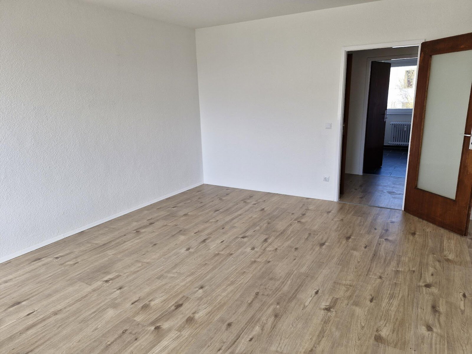 - Laminat - Bodenbelag und Raufasertapete in den Wohnräumen