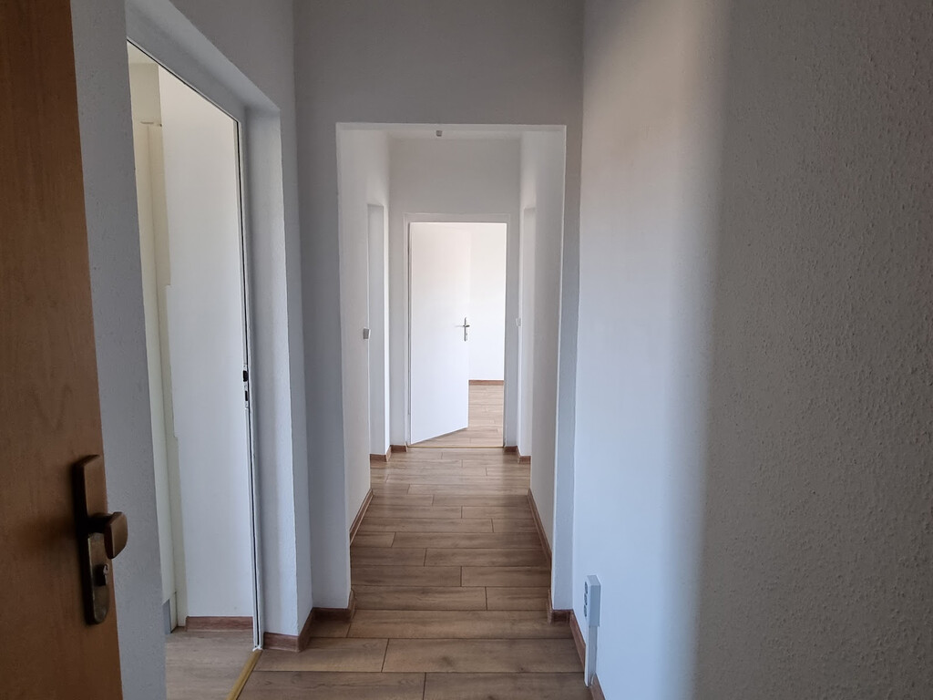 - Laminat - Bodenbelag und Raufasertapete in den Wohnräumen